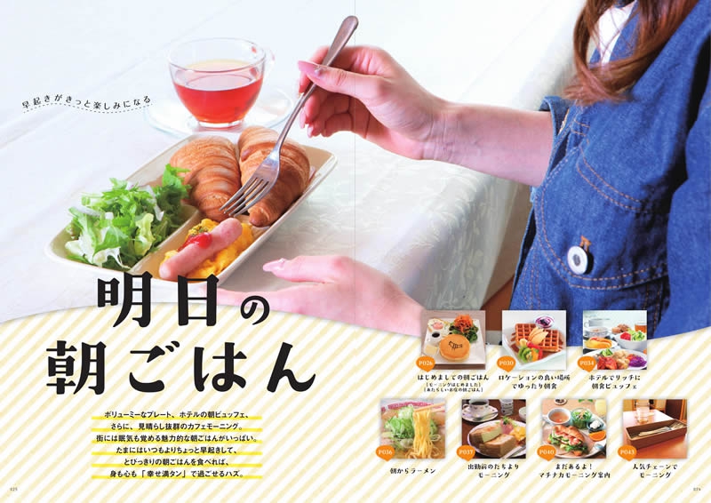 ボリューミーなプレート、ホテルの朝ビュッフェ、さらに、見晴らし抜群のカフェモーニング。街には眠気も覚める魅力的な朝ごはんがいっぱい。早起きがきっと楽しみになる!