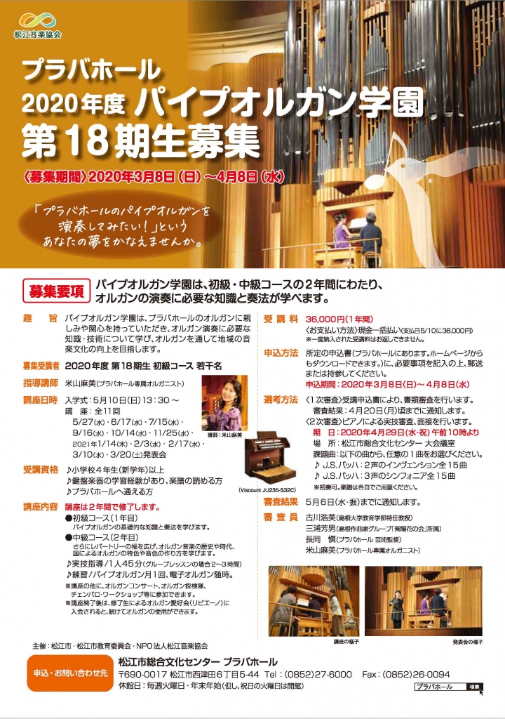 2020年度 パイプオルガン学園 第18期生募集