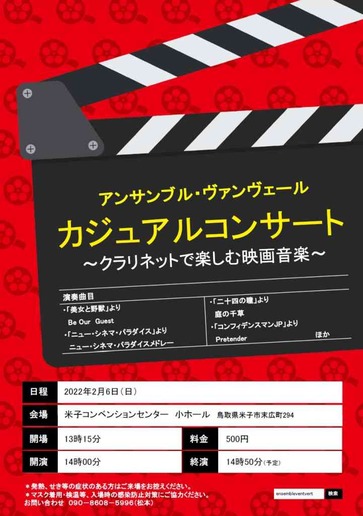 ※開催中止※アンサンブル・ヴァンヴェール カジュアルコンサート~クラリネットで楽しむ映画音楽~