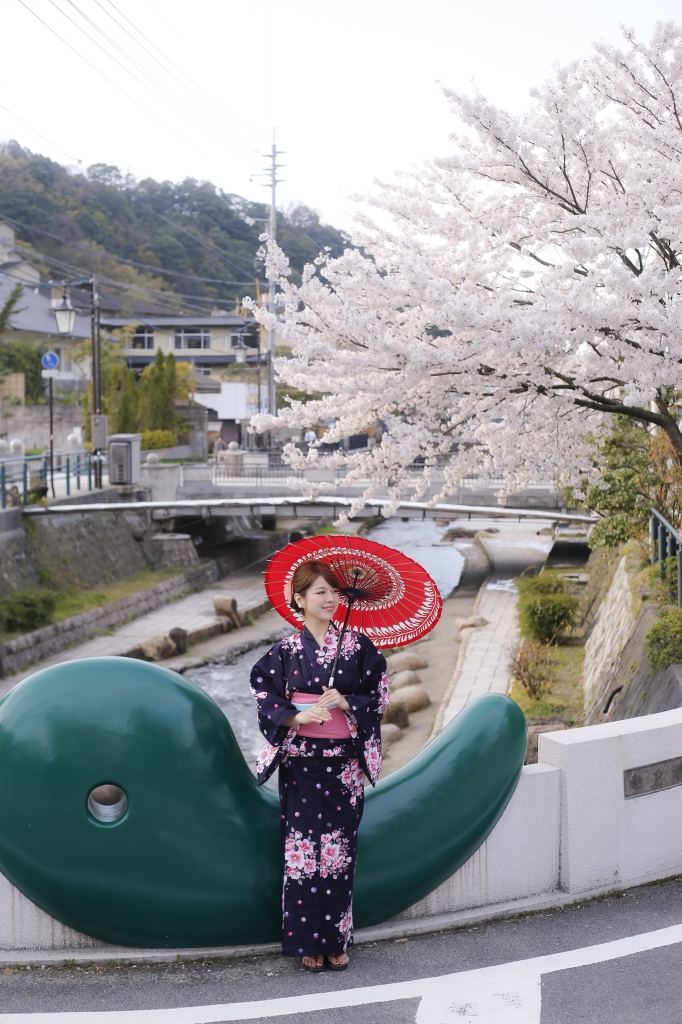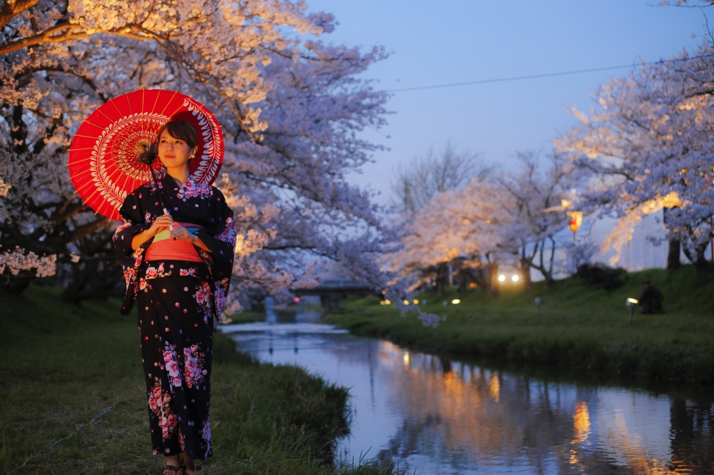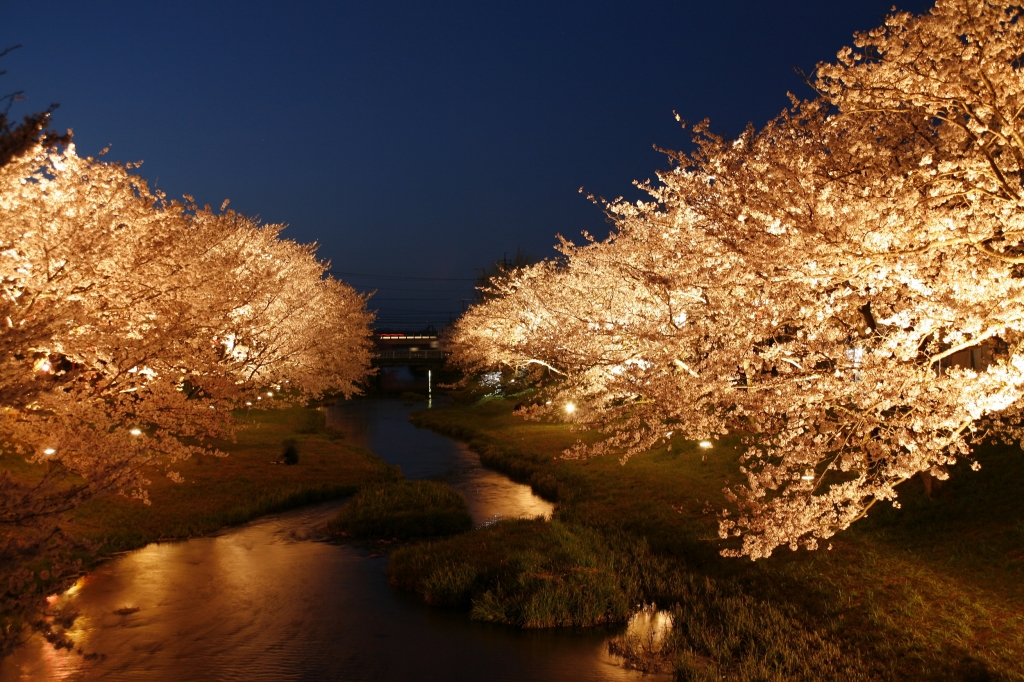 「美肌の湯」として知られる島根県内有数の温泉地・玉造温泉街。この時期は川の両岸に咲き誇る約400本のソメイヨシノが見ごろ。桜の開花に合わせ、桜並木の一部をスポットライト、ぼんぼりでライトアップ。昼とは違った雰囲気の夜桜鑑賞を楽しめる。