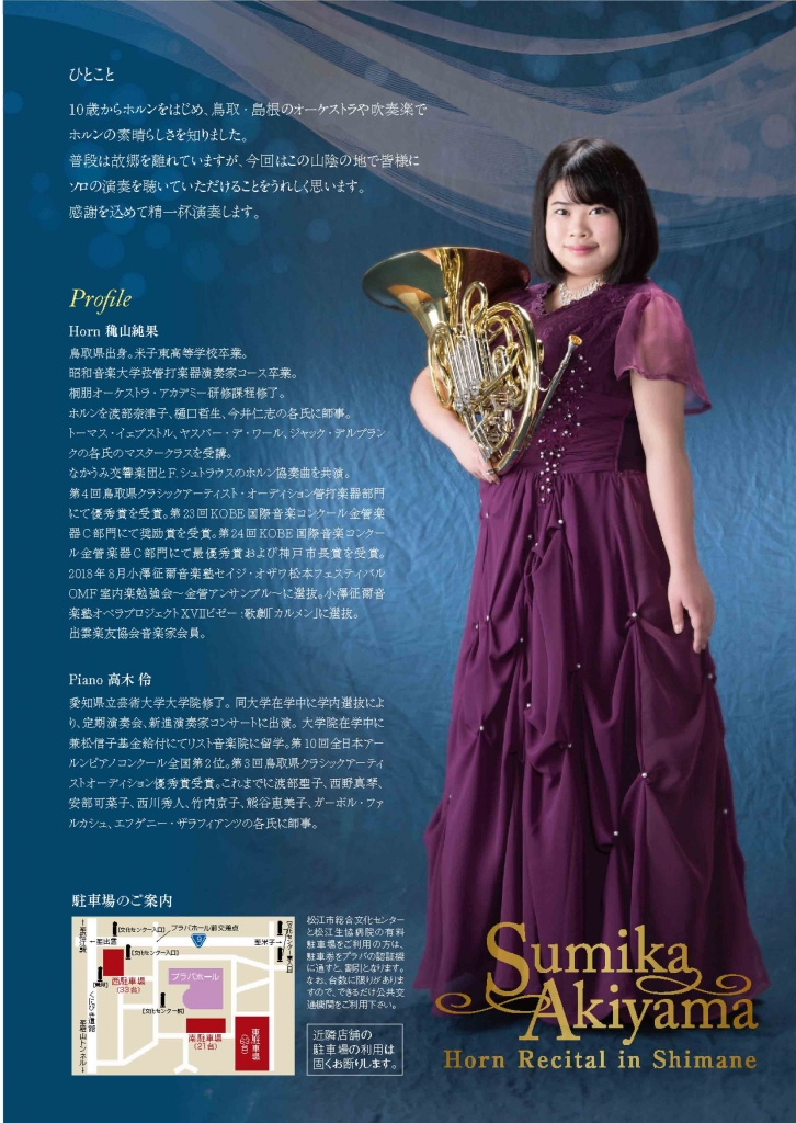 なかなか聴く機会のないホルンソロのコンサートを故郷山陰の地で披露。