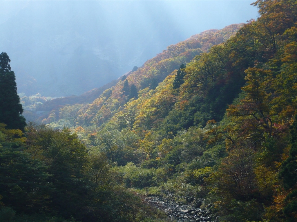 見頃を迎えた大山の紅葉は、朱・黄・オレンジ色のグラデーションが鮮やか。