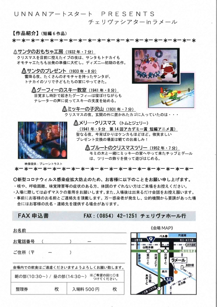 | お問い合わせ | UNNANアートスタート事務局(チェリヴァホール内) |