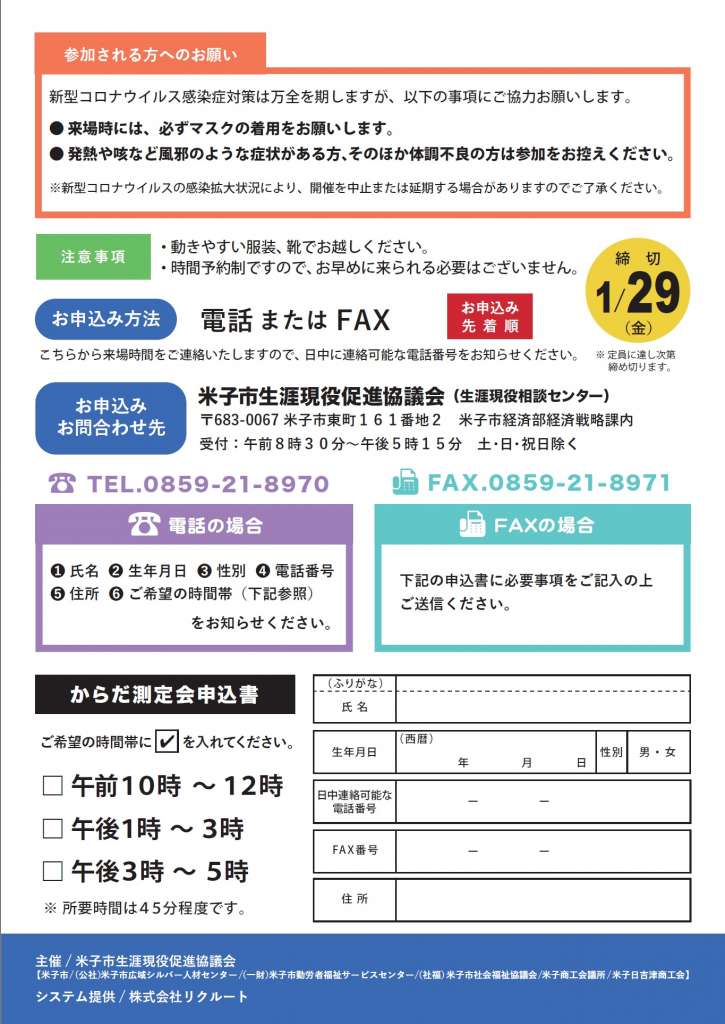| お問い合わせ | 米子市生涯現役促進協議会(生涯現役相談センター) |