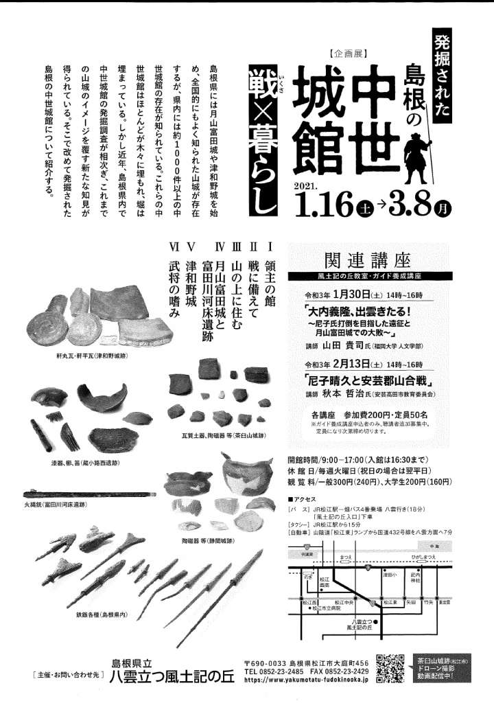 企画展では、改めて発掘調査された島根の中世城館について紹介する。