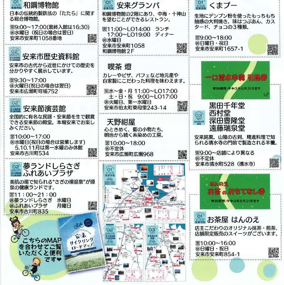 2人以上のグループでレンタサイクルを利用すると安来市内の観光施設やお店で使用できるお得なクーポン券をプレゼント。