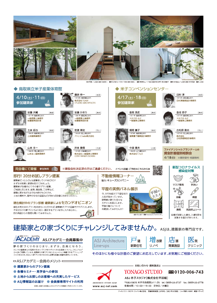 建築の専門家が参加する住宅相談会。当日は6人の建築家が参加して、建築家による家づくりのプランニングを気軽に体験できるキャンペーンをはじめ、現在検討中のプランに関して、建築家に診断してもらえる「セカンドオピニオン」の企画などを実施。