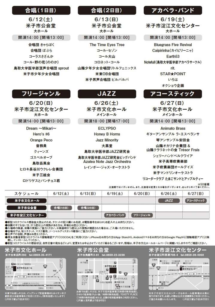 | お問い合わせ | 米子市音楽祭実行委員会事務局(米子市文化ホール) |
