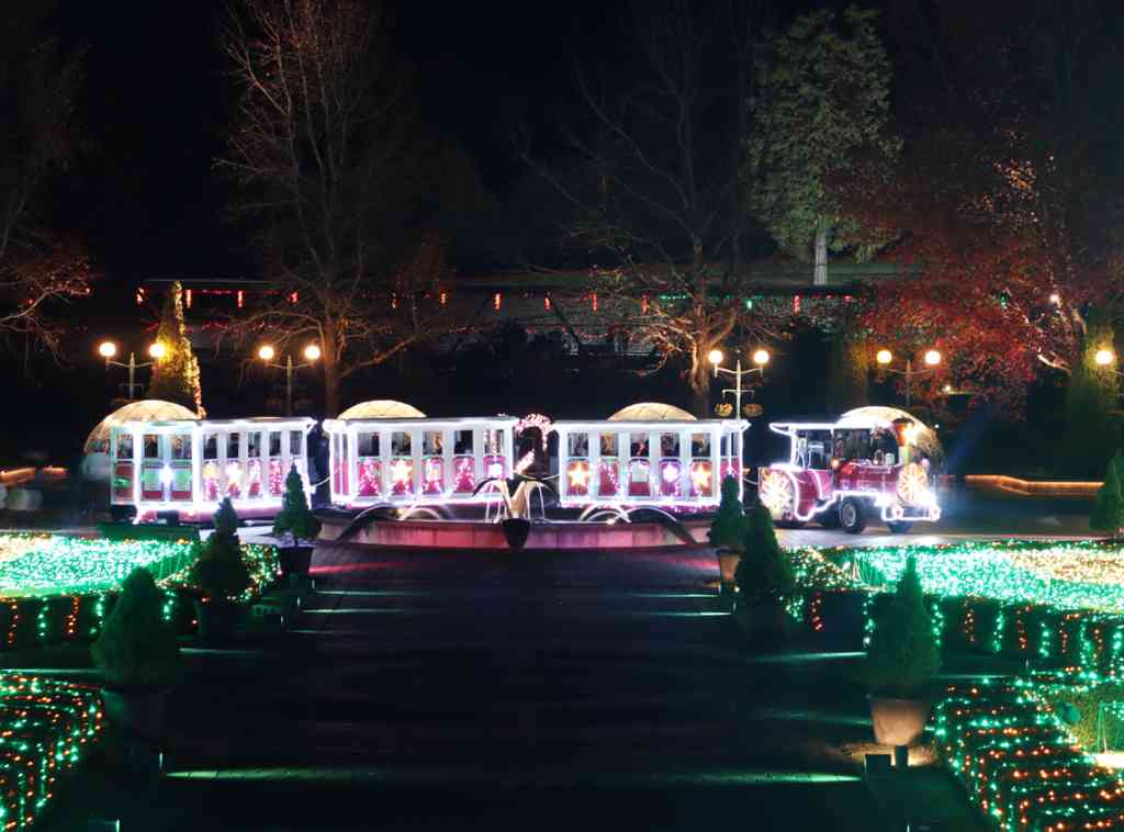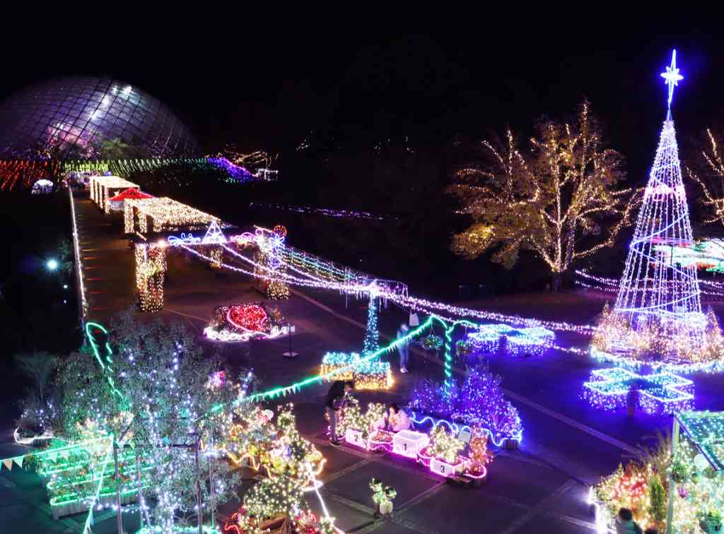 子どもに大人気のフラワースタートレインは、園内のイルミネーションをゆっくりと見てみたい方にオススメ。トレインが進むにつれて園内の景色も変わっていく。
