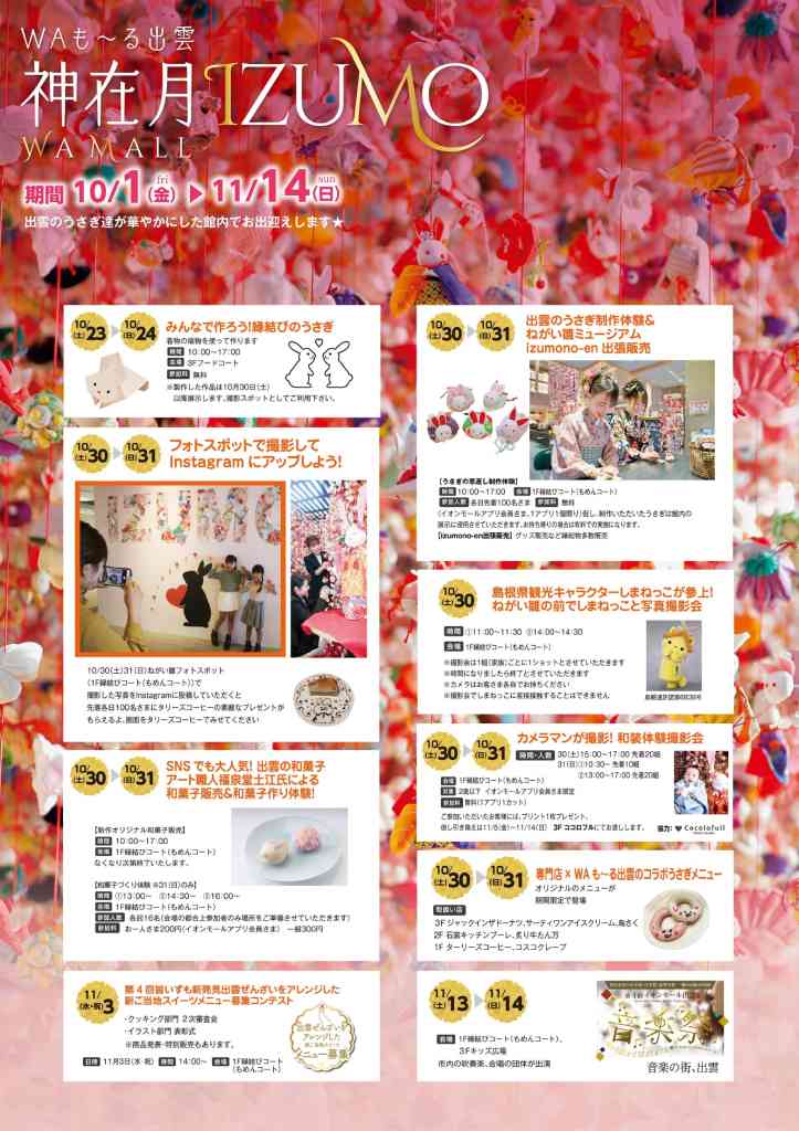 さらに、うさぎ雛の制作体験やねがい雛のフォトスポット、イオンモール出雲の各専門店による特別限定メニューの販売など、家族そろって出かけよう。