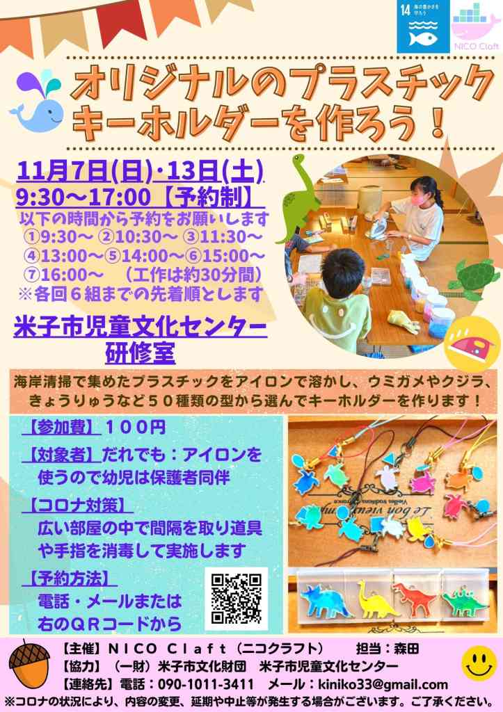 海岸清掃で集めたプラスチックをアイロンで溶かし、ウミガメやクジラ、きょうりゅうなど約50種類の型から選んでキーホルダーを作る。