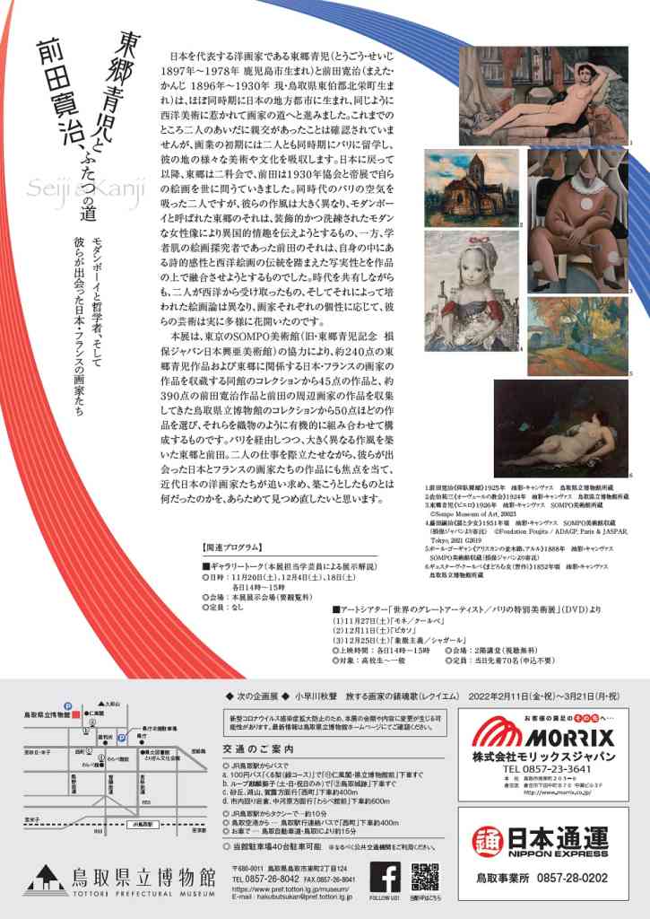 東京の『SOMPO美術館』と『鳥取県立博物館』のコレクションの中から、東郷青児と前田寛治の代表作を紹介。