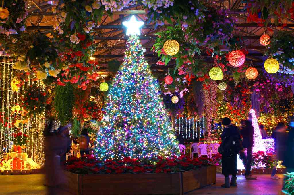 天候を気にせず、満開の花とイルミネーションを同時に楽しめる特別な時間を。ペンギンサンタのお散歩やナイトフクロウショーなどイベントも開催する。