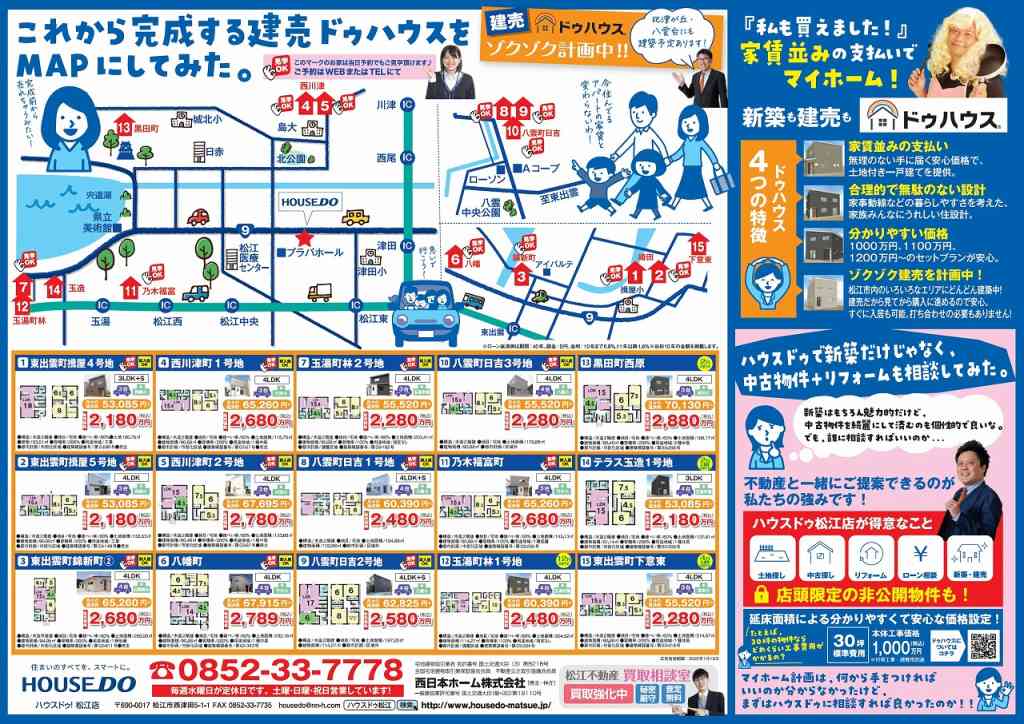 新築(建売)、中古住宅、中古マンション、土地など、お家のことなら全部相談できる『ハウスドゥ!松江店』で、マイホーム計画をスタートさせよう。
