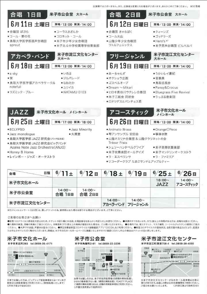 鳥取県米子市周辺で音楽活動する団体などが日頃の成果を披露する音楽の祭典。