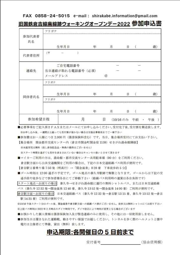 | 会場 | 関金都市交流センター(せきがね湯命館併設)集合 |