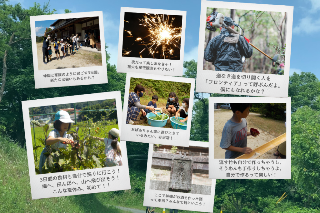 親元を離れ、自分のことは自分で取り組む”圧倒的自給自足”を体験するサマーキャンプ。去年地域住民と開拓した室山にある布須神社の参道を、今年はさらに開拓していく。
