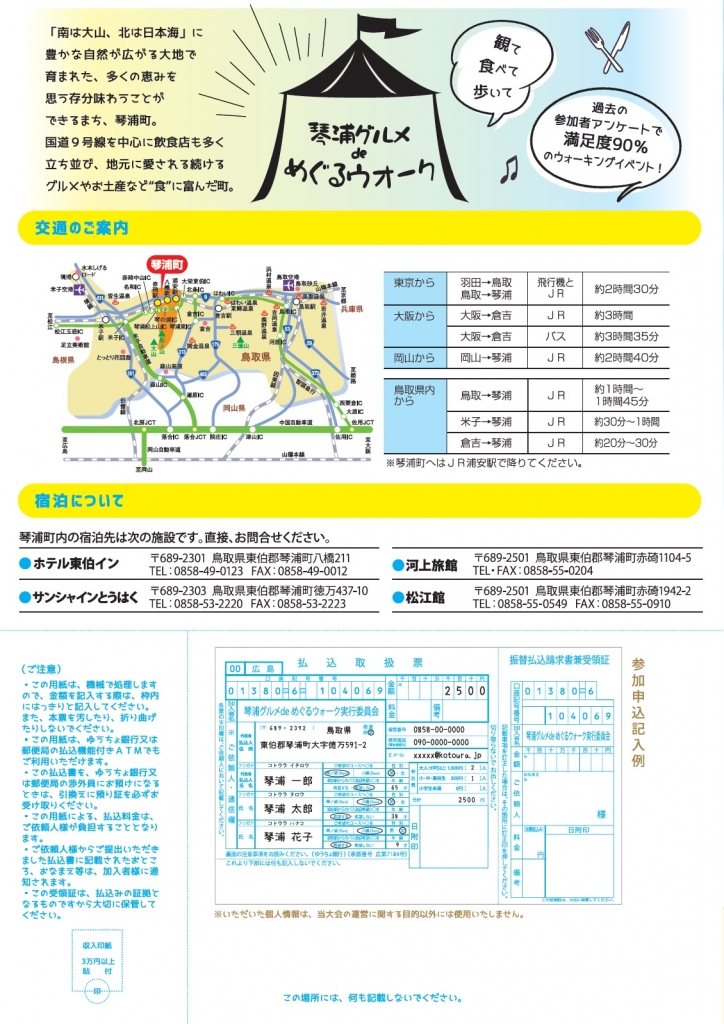 | 備考 | 休み:雨天決行、荒天時中止 その他:小学生以下は要保護者同伴。八橋コース定員400人、琴ノ浦コース定員600人※定員に満たない場合のみ当日受付あり |
