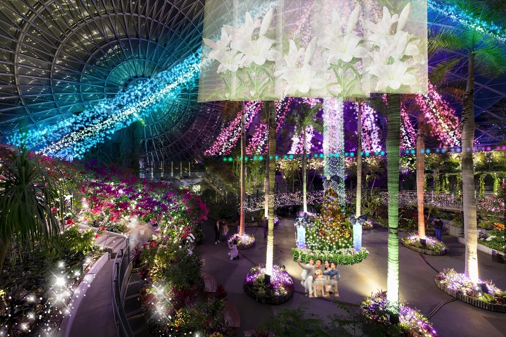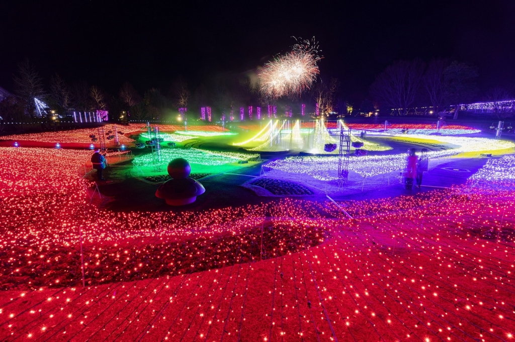 日本最大級のフラワーパークを舞台に、中国地方最大級の140万球の光がきらめく好評のイルミネーションイベントが今年も開催。3年目となる「ゆりのフラワードーム」はドームの天井から吊り下がる9本のツリー状のイルミネーションがドーム内を華やかに彩る(点灯体験の演出なし)。今回初となる「フラワーマッピング」では花や風景、花回廊の歴史20年を振り返る映像を、3D効果を利用し巨大なオーガンジースクリーンに映し出す。また、女性に人気のハーバリウムが高さ2mの巨大な「ハーバリウムツリー」となって初登場! 天井から降り注ぐイルミネーションと共演し、絶好のフォトスポットに。期間中は金~日曜と祝日を中心に、19時から約400発の花火が楽しめる。