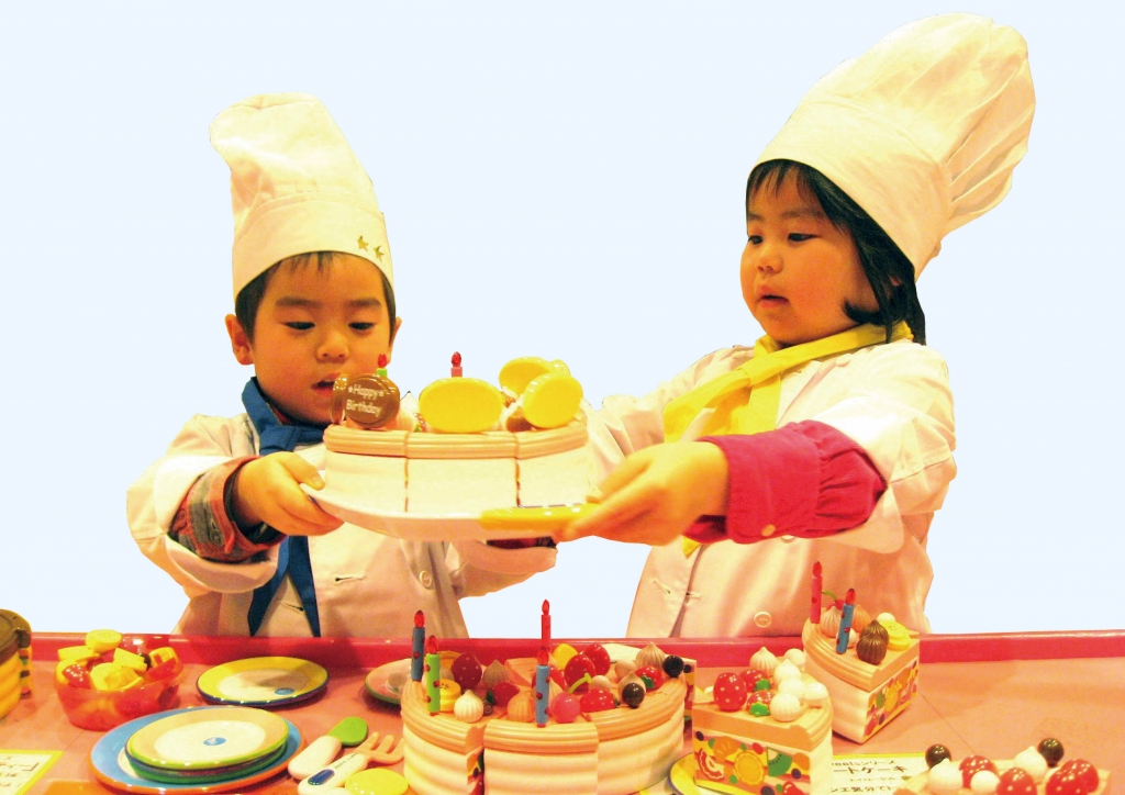 室内に100種類以上のおもちゃが大集合する人気企画。「ままごとコーナー」では、憧れのユニフォームを着てコックさんになりきって遊べる催しも。1年間何度も入館できる友の会(年会費2500円)に入会するとさらにお得に。