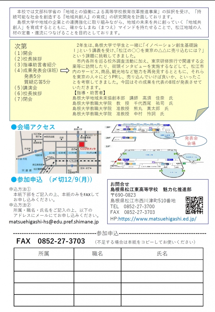 | お問い合わせ | 島根県立松江東高校 魅力化推進部 |