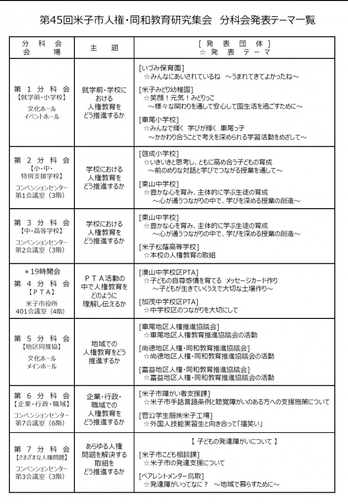 | お問い合わせ | 第45回米子市人権・同和教育研究集会実行委員会事務局(米子市役所人権政策課) |